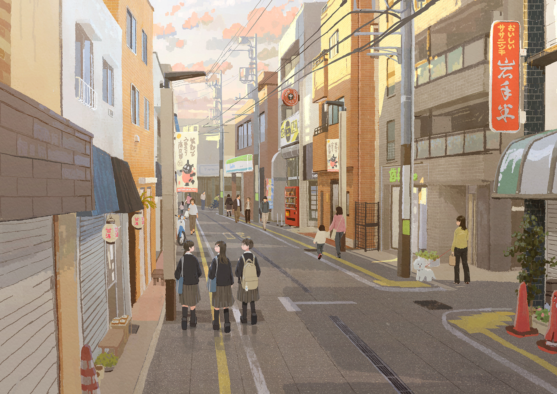 メインイラスト 商店街・夕方
